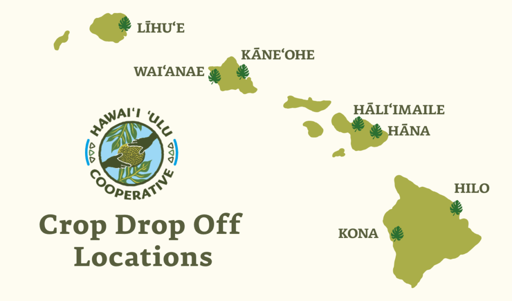 Please review the following drop off location details carefully for address, contact info, and other instructions. Note that we have an “Open Door” policy for ʻulu harvested by co-op members only; we are currently not accepting breadfruit from non-member farmers. If you are interested in selling your ʻulu, please consider joining our cooperative.