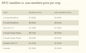 You may sell fruit (‘ulu, kalo, pala’ai, ‘uala) to HUC as a non-member supplier; however some products have a lower pay price for non-members and only active members receive technical support.