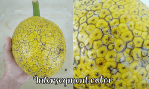 - Intersegment color, which should change from green to yellow or brown when the fruit is mature (see photo below)